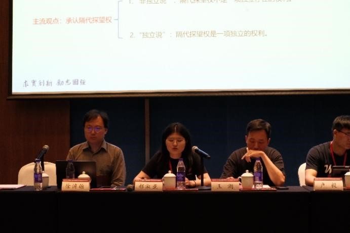 博士研究生)以《隔代探望权何以成为一项独立的权利?——基于“厚”的家庭观文化》为主题作报告。她指出,关于隔代探望权能否是一项独立的权利问题,在当前的学术讨论中存在两种争论,但是均止步于权利本身的形式性探讨,而未涉及到深层次的家庭结构研究。隔代探望权独立性争论,反映了从宗族家庭到核心家庭的变迁过程及其影响,解决该问题则需要在二者之间寻求平衡,即主张一种“厚”的家庭观。只有在“厚”的家庭观指导下,才能对隔代探望权进行独立的安排。