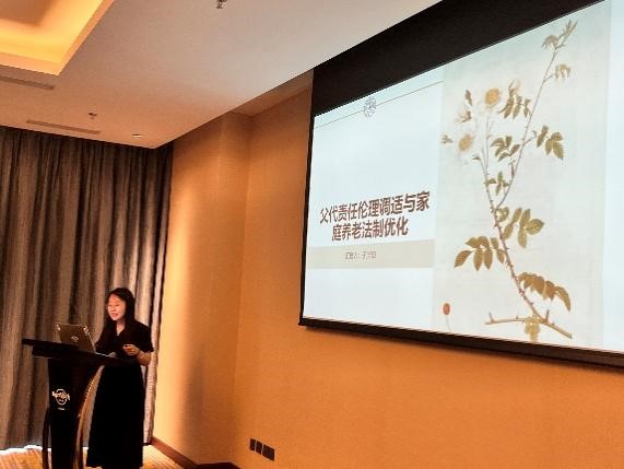 博士研究生)以《父代责任伦理调适与家庭养老法制优化》为主题作报告。她指出,在城镇化背景下父代责任伦理进行适应性调适,低龄父代延长资源积累时间,高龄父代克制消费需求,父代接力行为扩张。孝道话语在父代责任伦理调适下发生变动,孝道履责主体多元、孝道标准下降、孝道约束力弱化,父代为子代的反馈行为减负。重塑农民家庭养老秩序,家庭养老法制融合孝道建构起有利于父代的保护话语,然而,家庭养老法制保障力度的加强却未同步改善农民家庭养老秩序。应然法律话语与实然孝道话语的分离是理解这一悖论的关键。