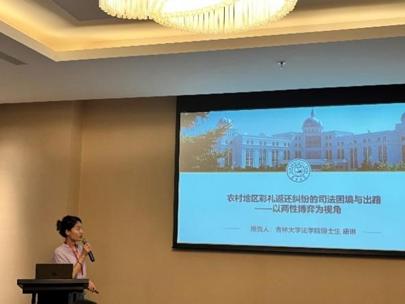 博士研究生)以《农村地区彩礼返还纠纷的司法困境与出路——以两性博弈为视角》为主题作报告。她指出,我国农村地区存在着大量的彩礼返还纠纷。彩礼及彩礼返还纠纷是男性话语下两性博弈的产物,因此,法院处理彩礼返还纠纷时不可避免地会受到男性话语的影响。男女平等的实现必须保护女性的合法权益,因此,法院在彩礼返还纠纷的司法实践中必须注重对女性权益的保护。