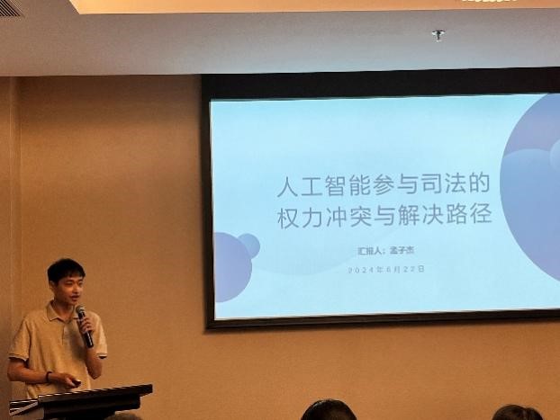博士研究生)以《人工智能参与司法的权力冲突与解决路径》为主题作报告。他指出,人工智能是一种以算法为核心的技术,在运用过程中具有权力化风险。人工智能在“知识-权力”架构下相对法官形成一种支配权力,并借此消解司法权力对裁判结果的支配力。据此,本文对人工智能的司法应用提出了规制方案。