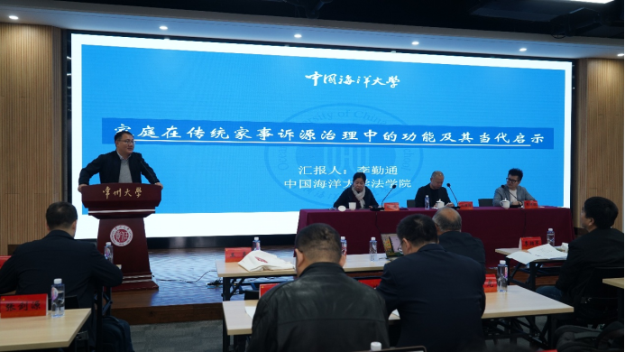 李勤通教授首先发言,他的报告题为《家庭在传统家事诉源治理中的功能及其当代启示》。李教授认为,传统家庭在家事诉源治理方面积累了丰富经验,当前背景下可以通过创新性转化为新时代提供借鉴,尤其是家庭自愈功能的现代运用。