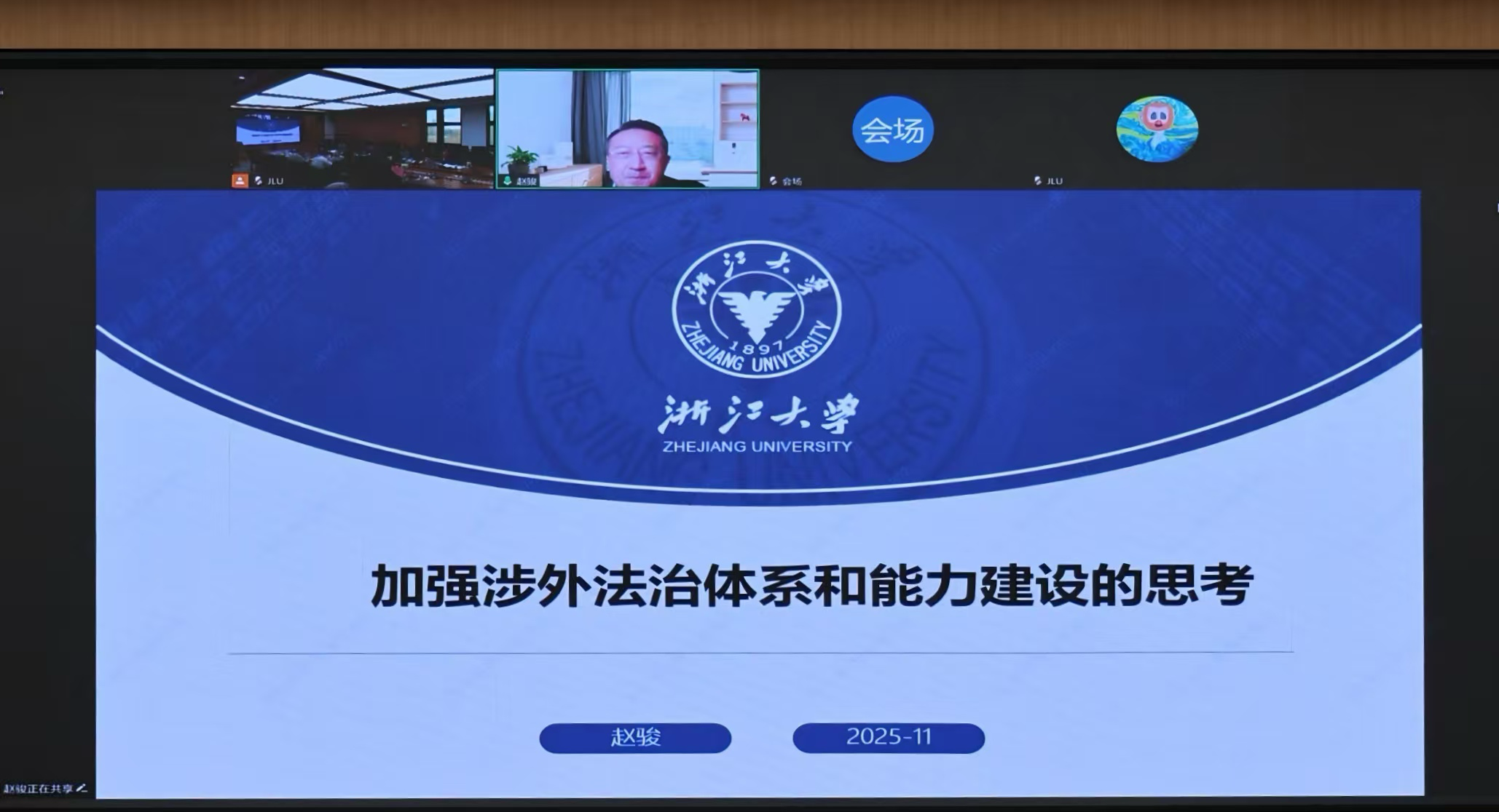 浙江大学赵骏老师围绕“加强涉外法治体系和能力建设的思考”作主题发言。他指出,涉外法治建设作为一项系统性工程,既是当务之急,又是长远所需。从实践成效来看,我国当前的涉外法治建设已在立法、执法、司法、守法、用法全链条取得显著进展。面向未来,涉外法治建设需进一步强化系统思维,以更高维度的统筹推进提质增效,具体聚焦规范、领域、方式、环节、价值、路径等维度的协同统筹。同时,要处理好合作和斗争的关系。围绕重点方面深化探索,比如:聚焦发展权的有效实现,以法治保障国家发展利益;优化中国方案的国际表达,提升涉外法治话语的国际传播力与影响力;推动研究方法迭代升级,通过激活传统法治智慧、突破经典理论局限、引入新兴研究方法,为涉外法治建设提供智力支撑。在具体实践层面,赵骏老师举了一些值得聚焦的领域:完善海外利益保护、推动《反跨境腐败法》落地、完善对外投资规制体系、加强前沿领域执法能力建设、着力提升涉外司法能力水平,积极发展涉外法律服务、加强涉外法治人才培养中的体系化和精细化等等。