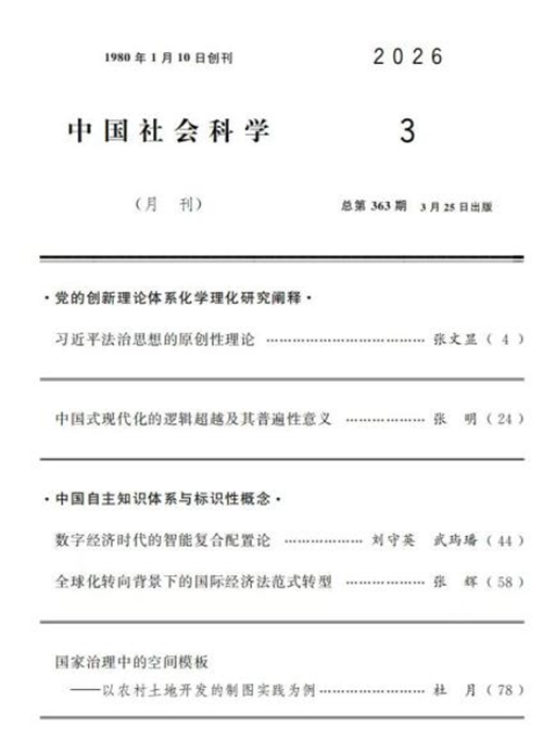 哲学社会科学资深教授张文显在《中国社会科学》2026年第3期发表题为《习近平法治思想的原创性理论》的文章。