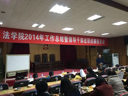 2014年工作总结暨领导干部述职述廉报告会在文科实验楼模拟法庭召开。大会由快猫