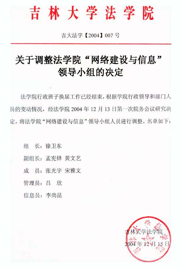 上一篇:关于调整快猫 “防火”领导小组的决定 下一篇:关于调整快猫 “民事调解”领导小组的决定