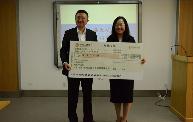 随后,校友代表曹丽女士,张斌律师与蔡立东院长进行了简短却庄重的捐赠仪式,其中不仅有金钱上对学校的援助,也有个人著书等精神财富的赠予,体现了吉大快猫