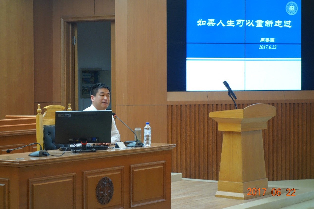 2017届毕业生最后一堂课在第三教学楼模拟法庭举行。主持人为快猫