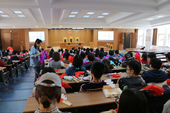 为了展现充满青春的法院风采,为了调动同学们在运动会上的积极性,2018年5月16日下午三点半,生管会于三教五阶组织了运动会观众训练。本次活动着重训练观众的口号整齐度与响亮度,力求运动会观众以最大的热情为快猫