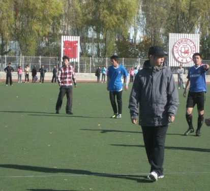 团委书记、学生会指导老师高岩老师亲临现场作裁判;四班和六班的球员你争我夺,互不相让。双方实力不相上下,比分一直僵持着,场下拉拉队的加油声一浪高过一浪。直到最后几分钟,六班球员一记飞脚让四班守门员措手不及,拿到了本场比赛至关重要的一分。球员们踢得十分投入,以至于有的球员摔倒了,负伤了,仍然强撑着站起来,继续拼。这里不是一个人的战场,每一个球员的身边都有队友,每一支球队的背后都是整个集体!正是在这种强烈的集体荣誉感的指引下,才会有如此优秀的球员,才会有如此优秀的球队!最终,六班夺得胜利的桂冠,四班位居第二。