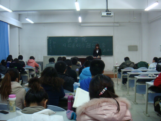 08级保研经验交流会。会议由法律实践者协会理论部副部长杨林佳主持。