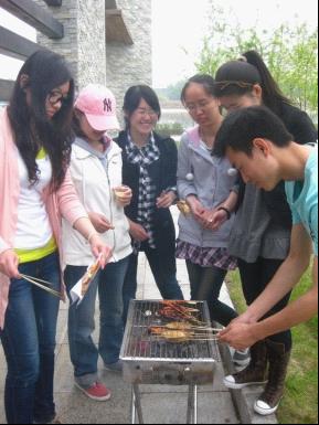此次春游的主要活动是烧烤和踏春。伊通河畔有提供烧烤的场地,班委根据实际情况,选择了活动场地。烧烤活动分两组进行,每组人数基本相同,由同学们自行负责烧烤活动,感受烧烤及自己动手的乐趣。在活动一开始,班长和团支书负责分发食物,每个组都能获得相对公平的食物和作料还有水果。同学们都很积极,一开始就分工合作,有的串肉,有的生火……每个人都忙得不亦乐乎!