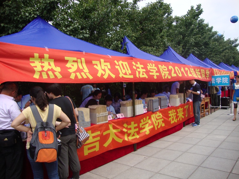 2012级新生迎接工作正有序开展。2012年8月24日清晨7时,负责迎新工作的志愿者们已经开始在工作岗位——五月花广场上忙碌起来。