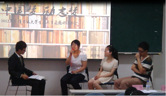 首先进行报告的是来自哲学社会学院的张倩同学。她向同学们介绍了自己从高中到大学刻苦学习、保研人大的经历,提醒同学们在大学一定要找到为之奋斗的目标,并与同学们分享了自己在大学的三点心得体会——一是不要嫉妒他人;二是要学会抵制各种各样的诱惑;三是珍惜每一次自己做选择的机会。