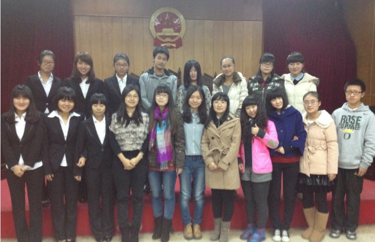 “英语达人”竞赛决赛在模拟法庭举行。比赛邀请了项潇燕、李岚、郎静三位英语成绩优异的研究生学长担任此次决赛的评委。