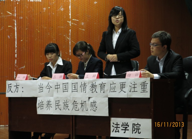 代表队的观点为“当今中国国情教育应更注重培养民族危机感”。