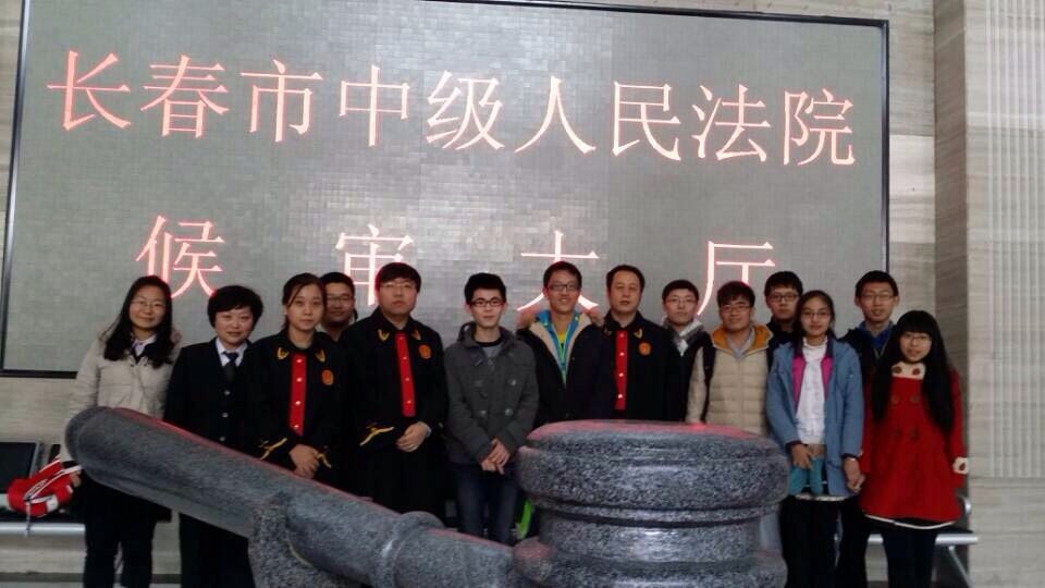 12月3日,在我校法律实践者协会副会长韩富饶的组织下,我校20余名大学生参加了长春市中级人民法院的听审活动。此次活动以”感受法律荣光,捍卫法律尊严”为宗旨,围绕现实生活中的真实案例而展开,使每一位参与者切实体会到了法制的魅力。