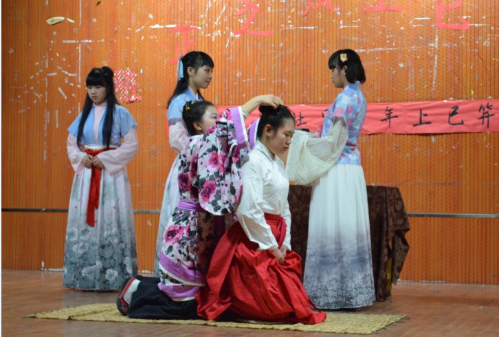 3月28日晚上五点过,一群身着汉服的同学出现在我校中心校区田家炳学生活动中心一楼小礼堂内,他们即将在这里举行一场传统的汉族女子成人礼。这也是年轻的白露汉服社在成立之后的第一次公开亮相。