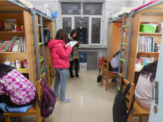 全体寝室进行了防火安全宣传之后的第一次例行检查。