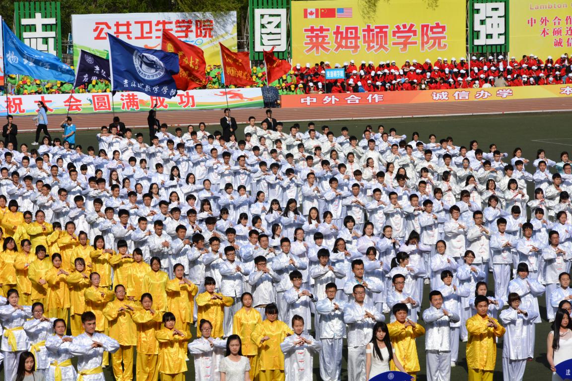 比赛继续进行。下午三时许,各项田径项目比赛基本已全部结束,在观看完力量与速度的比拼后,体育场上出现了新鲜元素——太极拳集体项目,着实令人耳目一新。来自各个学院的太极拳队伍聚集在体育场,场面极其壮观。太极拳以中国传统民乐“茉莉花”为背景音乐,与太极拳的柔和之美相映成趣,使人感到非同一般的典雅。在场的师生们纷纷拍手称赞,外国友人们更是赞不绝口。太极拳蕴含着中国古老的智慧,更彰显着青春的活力,快猫