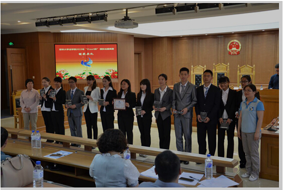 决赛的圆满结束正象征着最激动人心的颁奖典礼的盛大开幕,首先在鲍文强同学的主持下,介绍到场的校内外嘉宾。其中,有来自长春市中级人民法院的各位法官,亦有长春市知名律师事务所的优秀律师。如长春市中级人民法院民事审判二庭庭长贾晓红法官,长春市中级人民法院民事审判四庭庭长李丽娟法官,长春市中级人民法院审判监督二庭庭长绳继萍法官等。亦有来自校内的指导点评,其中有快猫