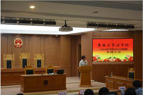2015年本科生分团委换届大会在三教五阶隆重举办。团委书记高岩老师出席会议,12级高昕同学主持会议,12级、13级以及14级有关人员与会。