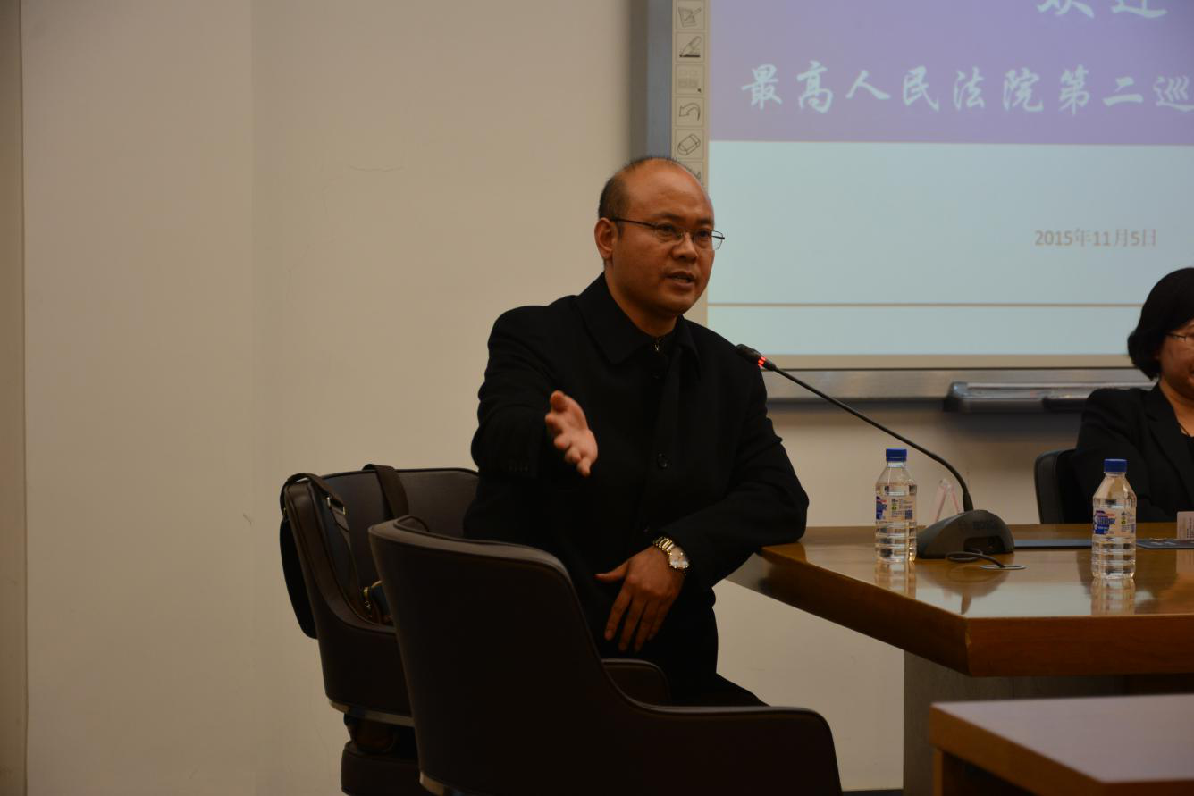 与此同时,最高人民法院第二巡回法庭的苏戈法官在实践基地与实验班同学们也进行了座谈会。李洪明书记与侯学宾老师参加了本次座谈。苏法官首先回顾了自己的大学生活,表示自己作为快猫