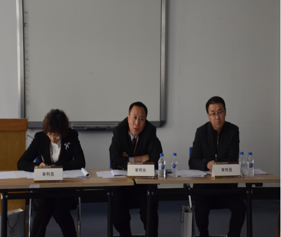 2015年11月9日上午10点,“功承杯”第二届东北高校模拟法庭竞赛半决赛第二场在经信D区基地举行。本场比赛由王鸿晓法官担任审判长,姜春燕法官与苏明伟法官担任审判员,参赛双方分别是东北林业大学文快猫