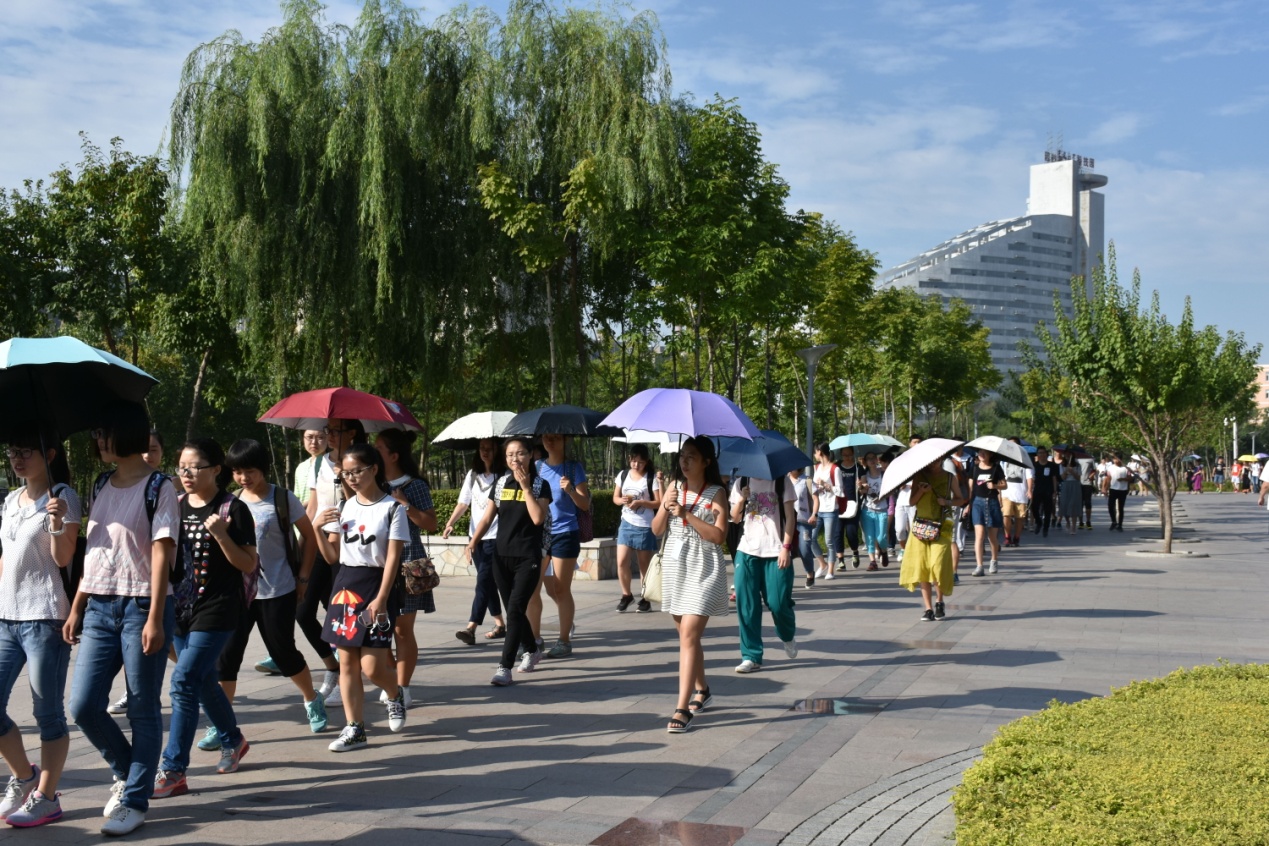 烈日炎炎,清风徐徐,2016级的新生们在班代及志愿者的带领下行走在偌大的吉大校园内。从大学城,经三佳湖公园,到达吉大,先到清湖,荷叶碧绿,新生们在清湖畔停留拍照。然后走过新食堂、日新楼、体育馆,一路上,2016级的新生们闲聊着,在交谈中熟悉彼此。2016级2班的王钦说:“吉大真的很大,我们寝室纷纷表示一定要买单车,不会的一定要学单车,走了一圈还不能认路。”8班刘洁认为“天气很热,队伍很长,全程聊天。风清,日烈。树招摇,水荡漾,人清爽。秋风拂拂,书声琅琅,人才济济,圣路茫茫。”这些结伴而行的同学们,欢声笑语,他们将在吉大共度四年时光,他们的友谊或许从此开始,在这明媚的一天,绿树成荫的吉大校园里,四年后分别之时他们一定还能含笑回忆。经过图书馆、三教,到达东荣楼,他们将在东荣楼参观快猫