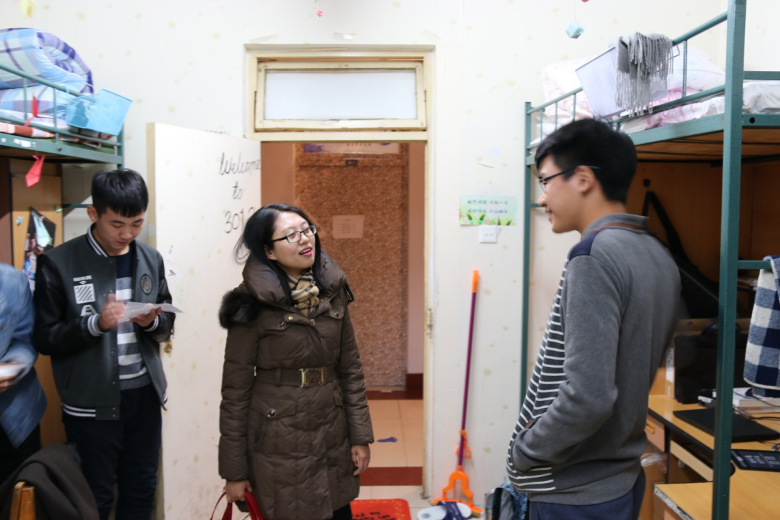 查寝过程中,马老师嘱咐大家要注意寝室用电安全,应当遵守学校纪律、拒绝使用违章电器,并在查寝的过程中熟悉了同学们日常的生活环境、加强与同学们之间的沟通。马老师在与同学们交流时,一再表示希望同学们展示平常的生活状态,从而增加对同学们的了解。检查小组主要依照依照学院制定的评分细则对寝室的清洁情况进行了计分评比,询问同学们有没有需报修的设施,并对是否使用违章电器进行了检查。