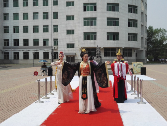 艺术学院副教授孙凯宇老师、中国美术家协会会员爱新觉罗·毓厚先生,三位老师分别致辞,激励年轻一代的学生们继承和发扬书画艺术。接着,在主办方的带领下,各校代表团来到小广场,一起观看精彩的汉服时装秀,人们仿佛穿梭到汉唐,体会古风墨韵。虽然骄阳似火,但大家仍沉醉其中,直到演出结束才隐约觉得眼前是二十一世纪的当代社会。10:30,在礼仪小姐的引领下,各高校代表团成员们来到了展览厅,伴随着古筝、琵琶、竹笛等乐器的演奏,每个人都缓慢挪动着脚步,不时在一些优秀的作品前门驻足欣赏,拿出手机留下这份美。也有些同学在交流着、评论着,学习每一幅书法作品的优点,指出美中不足之处。