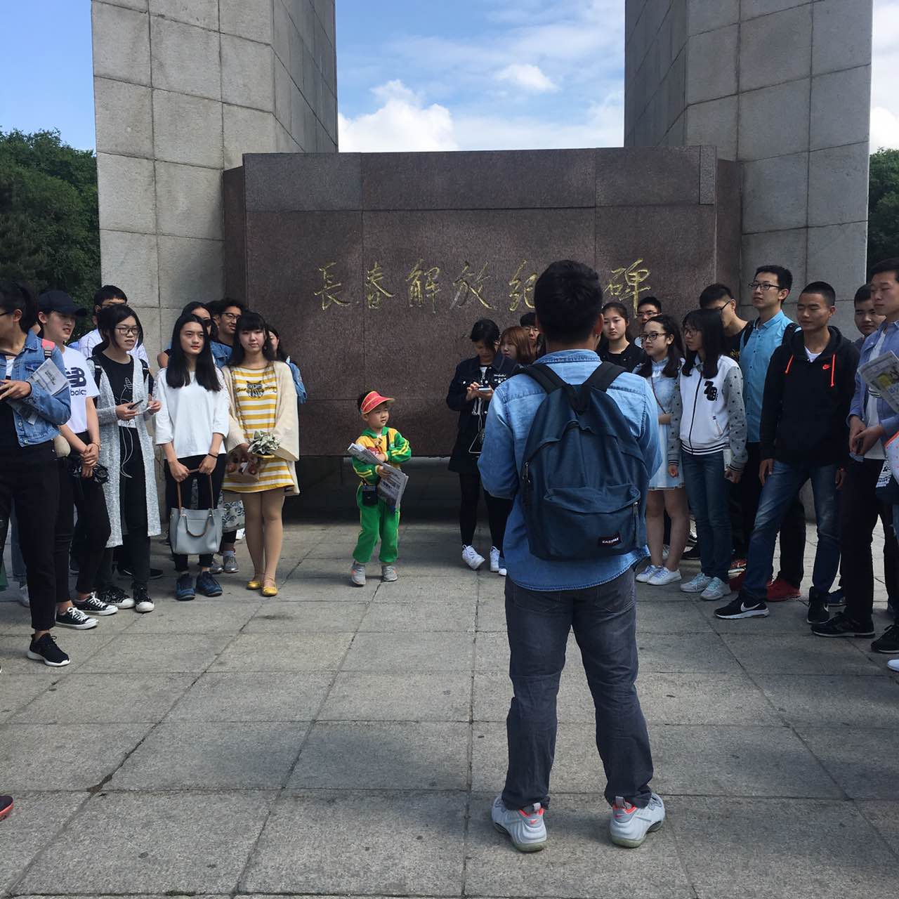 2016级本科生党支部全体党员及重点入党积极分子汇聚在南湖公园北门的长春解放纪念碑处,共同参与了本次“端正入党动机,加强党性修养”党建系列活动暨2016级党支部六月党日活动。