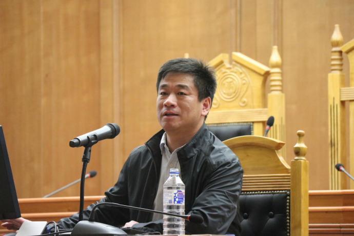 ,属于五院四系之一,是全国法学教育研究和人才培养的重镇。同学们对今后四年的学习大环境有了更深入的了解,逐渐认识到了作为吉大法学人的骄傲和责任。在第三部分关于老师的介绍中,周书记以李元元校长、校党委书记杨振斌老师、院党委副书记林媛媛老师等老师为例,让同学们认识到了我校老师把学生放在第一位的教学理念和值得尊重的道德品质。周书记建议同学们多和老师交流接触,尊重老师、亲近老师,最终在学术上努力超越老师。