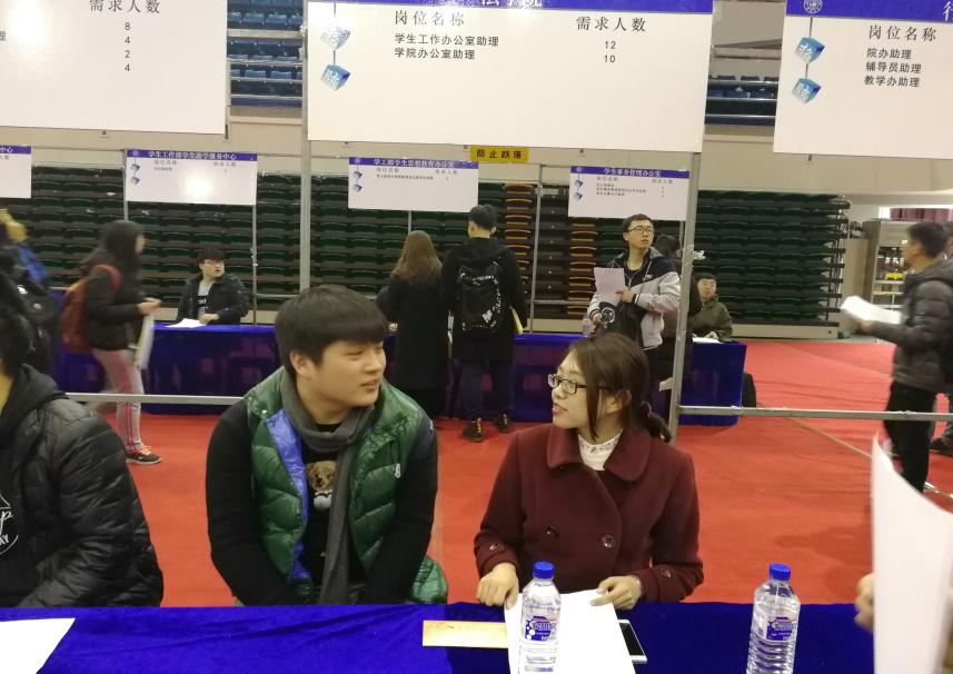 学生工作部主办的“校内勤工助学岗位招聘会” 在前卫南区体育馆如期举行。