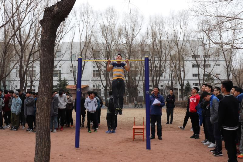 在引体向上的项目上,教练要求比较严格,同时引体向上也是一个比较难的项目,但是冯宇同学严格按照要求,尽了自己最大的努力,向上再向上,尽力再尽力,最后取得了比较良好的成绩。