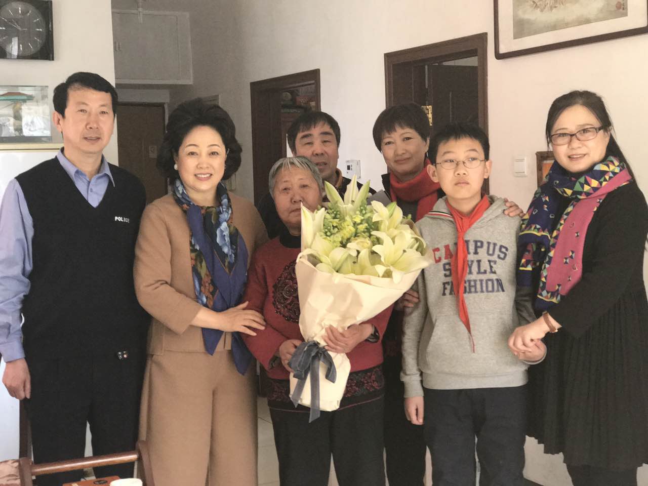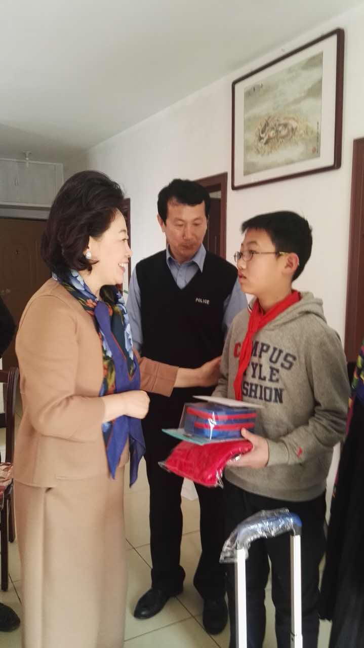 北京校友会执行会长张巍师姐的陪同下,亲切慰问彩云的父母、爱人和孩子李程。
