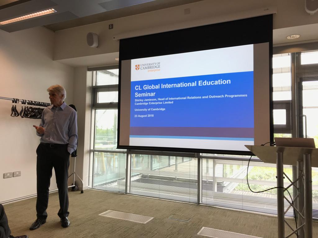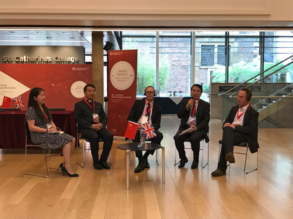 赴英参加了2018剑桥国际教育研讨会。本次研讨会的主题是“聚焦一流学科发展、共铸中英高校合作的黄金时代”,由CL Global、英中贸易协会和剑桥大学 St. Catharine学院联合举办。在开幕式上,英国国际贸易部教育部门主管 Geoff Gladding先生和我驻英使馆公使衔参赞王永利先生致辞分别代表双方政府致开幕词。Gladding先生在致辞中指出,英国政府支持开放的办学政策并一直致力于中英教育合作,国际贸易部的作用就是为中英之间的教育合作提供桥梁和纽带。目前英国学生对留学中国的兴趣日渐增长,汉语已经超过德语成为热度排名第三的外语。中英的学术机构和投资者对双方在高等教育领域的合作兴趣越来越高,因此需要探索具体的合作机制使双方的合作潜力充分释放。王永利公使在致辞中回顾了中英高等教育合作的历史,提出随着中英关系进入黄金时代,中英合作办学模式也需要转型升级,即从单方引模式合作转向双向平等交流模式。他还指出英国政府取消中国学生的实习签证的负面影响,希望英国政府能尽早恢复原来的签证政策。