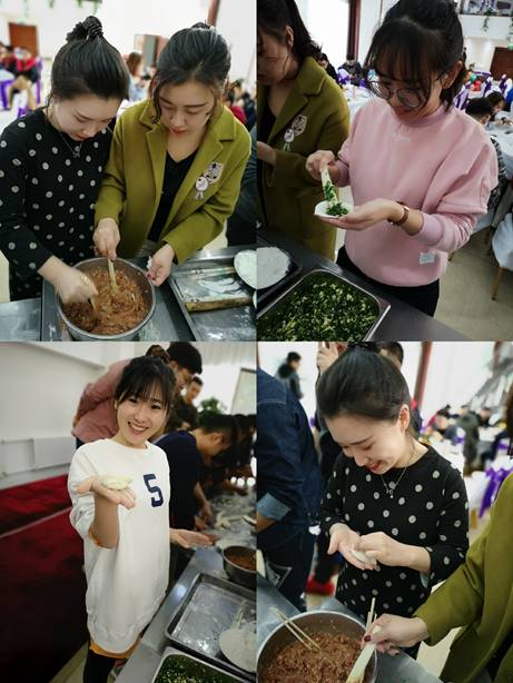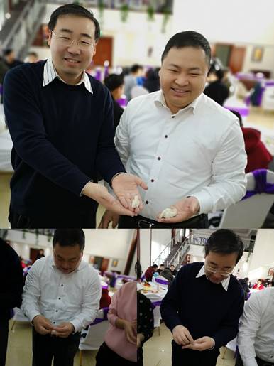 联欢会的第一项内容为“包饺子大赛”,友谊会馆统一提供食材,由各位学员和面、擀皮、包饺子,学员们热情高涨,纷纷使出拿手绝活,表情专注,动作娴熟,友谊会馆餐厅瞬间变成了竞技场,一个个皮薄馅大、饱满诱人的元宝福饺新鲜出炉。吕欣副院长、李宁总经理也忍不住加入到包饺子行列,也炫出了他们的风采。学员们巧思妙想,将饺子摆出花样,在欢声笑语中,结束了包饺子活动,并期待一会能将自己的作品展现在餐桌上。