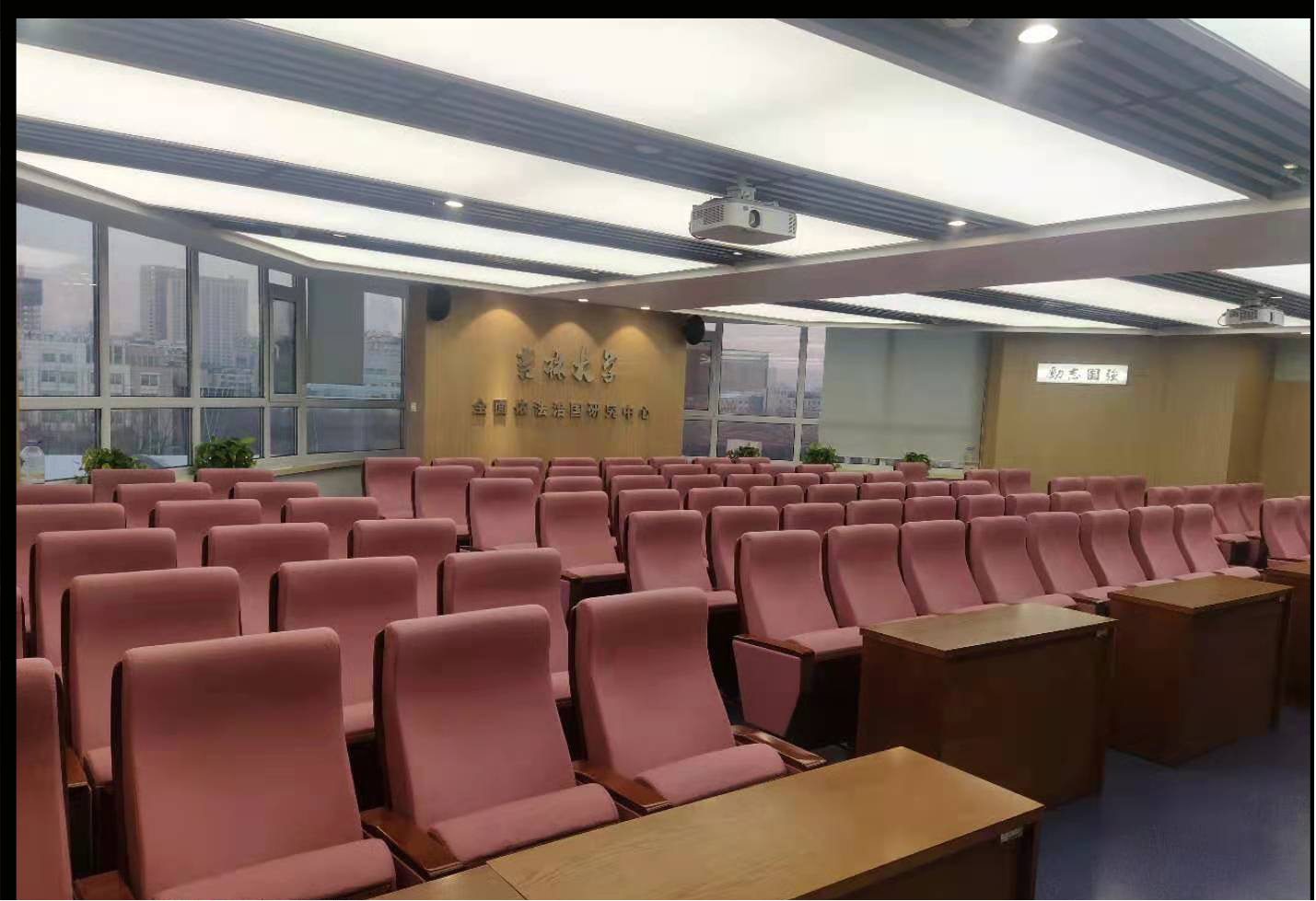 培训中心自管培训教室10间,座位数1000余个:其中,教学楼300座阶梯教室1个、东荣大厦156座阶梯教室1个、模拟法庭1个、95座报告厅1个、64人多媒体教室2个、U型教室1个、研讨教室3个。