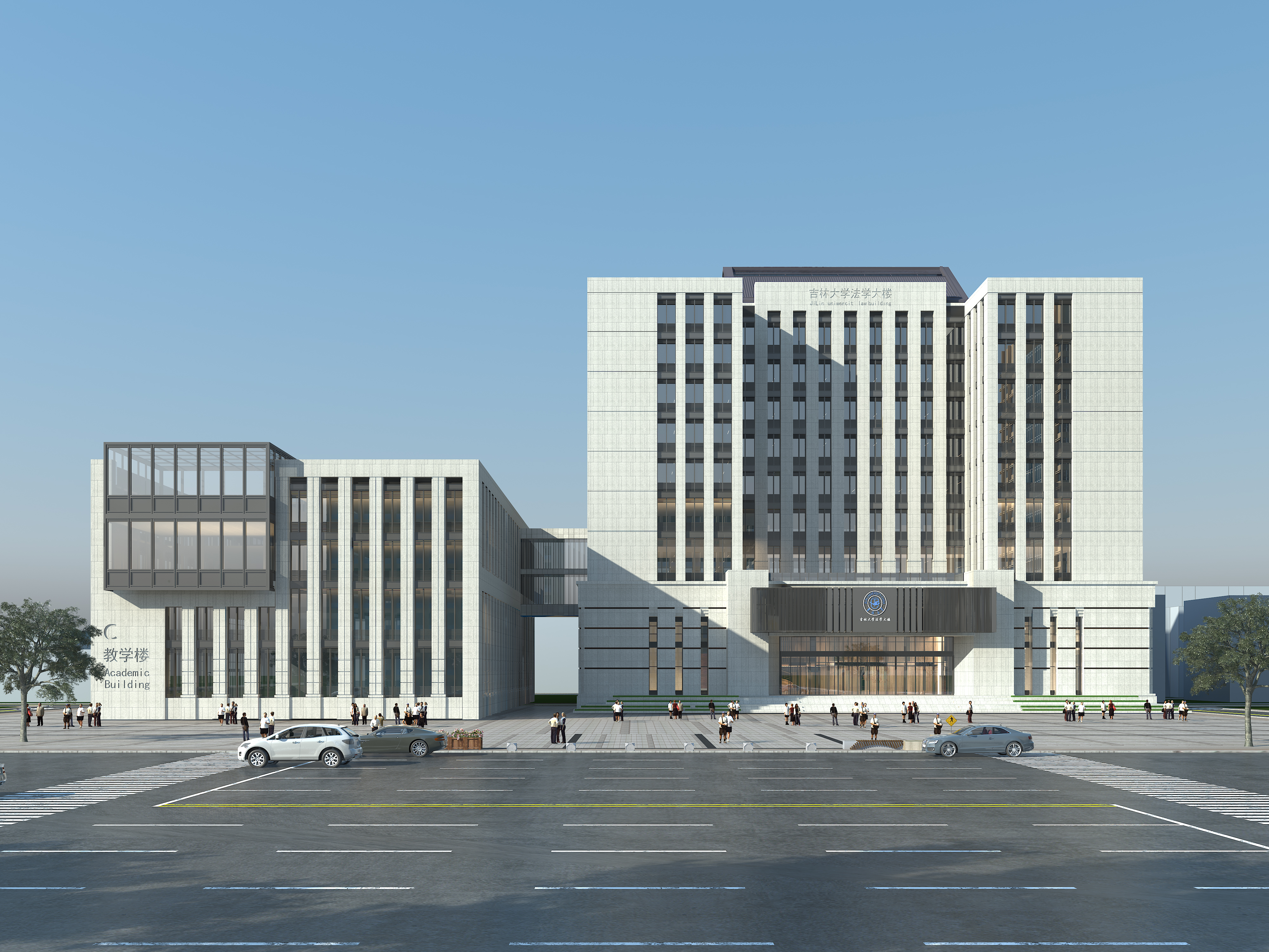 院史馆、捐赠人荣誉室、师生活动中心以及马列院史馆,二层、三层为建筑面积2800余平的“佐丹力”法学图书馆,四层至九层为学院办公室、教师工作室、会议室;B区有可容纳300人的学术交流中心、可容纳150人的法律工程训练中心和法学国际交流中心、可容纳200人的模拟法庭以及可容纳40人—120人不等的“三化”教室25间。法学楼预计2022年末主体封顶,2023年投入使用。