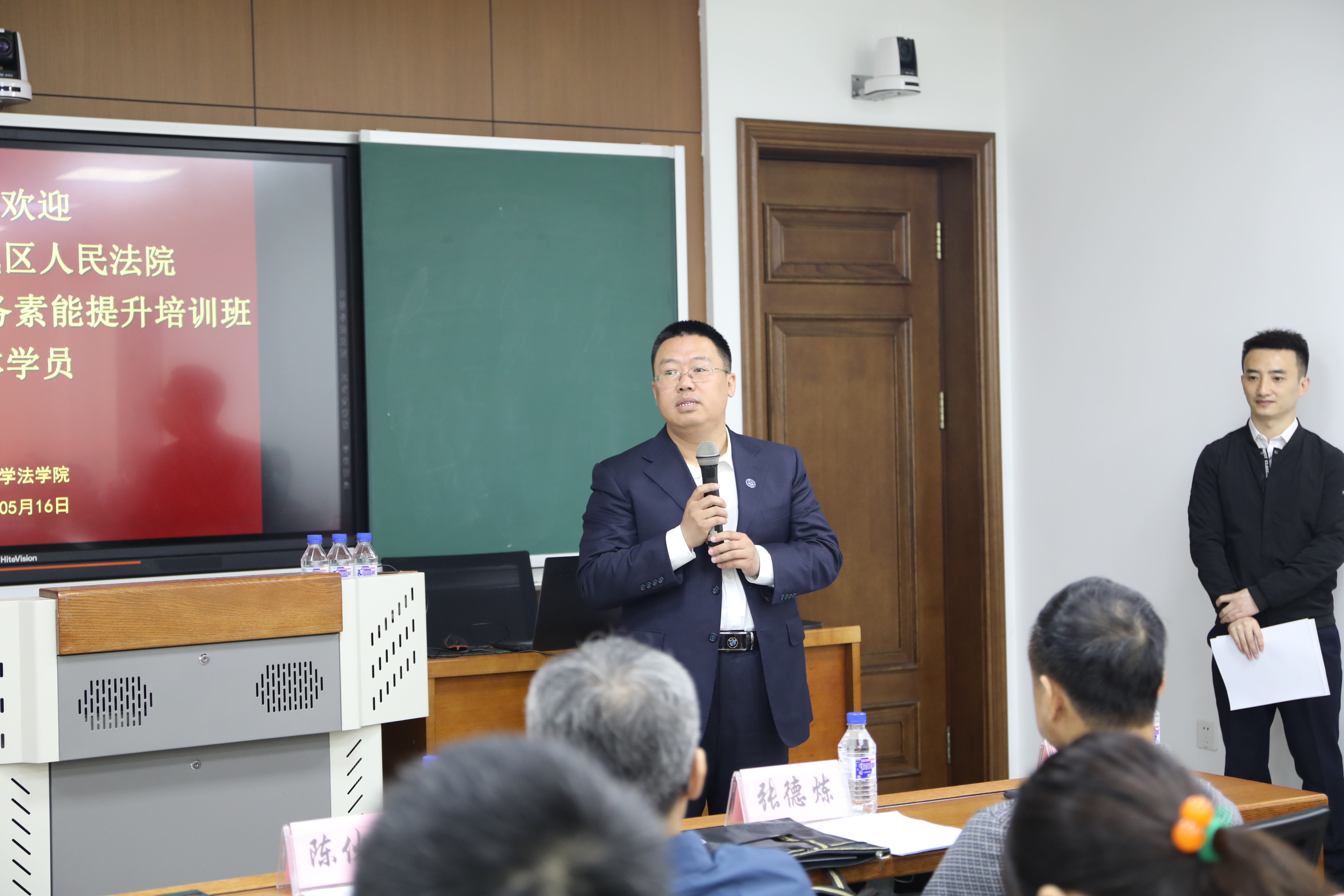和理论法学研究中心对本次社会服务工作的大力支持、精心组织以及提供的良好学习环境和优异师资表示衷心的感谢。他要求参训学员要以高度的政治自觉认真学习、深入贯彻习近平新时代中国特色社会主义思想和党的二十大精神,真正做到学有所成、学有所悟、学有所获,不断强化使命担当,提高履职能力,弘扬优良学风,确保本次培训取得实实在在的效果。
