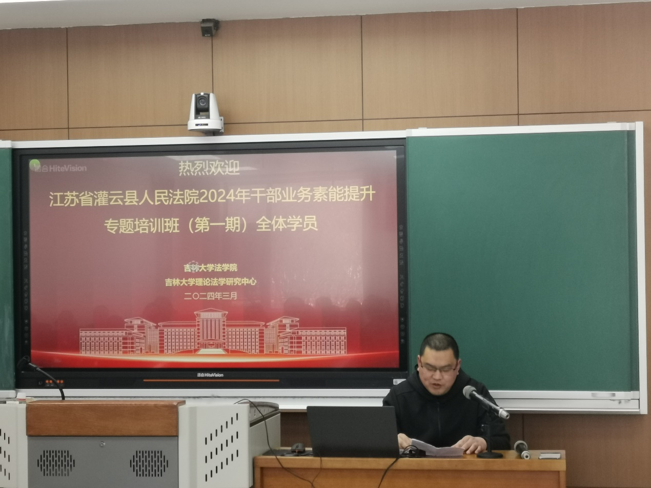 3月4日上午,江苏省灌云县人民法院2024年干部业务素能提升专题培训班第一期在法学院顺利开班。灌云县法院党组成员、副院长汤茂杰、周文元,审委会专委王树名,法学院党委副书记张俊峰等领导出席了开班典礼。开班典礼由理论法学研究中心行政副主任刘舰主持。