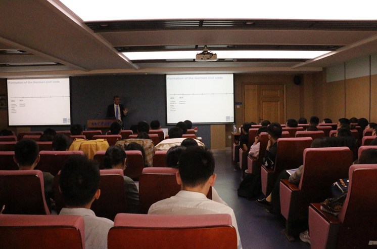 后面四场讲座对《德国民法典》的基本制度进行了简要的介绍,主要从请求权分析法、私法基本原则、合同义务、侵权责任法概述以及给付障碍。Haferkamp教授通过一个简单的案例引入了请求权分析法,让同学们亲自体验检索法条、支持请求的过程。随后教授讲解了私法的基本原则等问题,涉及私法的法律体系、法律主体制度、合同能力、私法自治原则及其限制、意思表示理论以及代理制度等相关问题。并对合同以及侵权适用范围进行区分。承担侵权责任的基础是控制理论,人应当对自己能够控制的事务承担责任。而在合同中是因为“使用”了别人,所以应当承担责任。最后Haferkamp教授介绍了给付障碍制度。给付障碍主要分为给付不能、给付迟延以及不良给付。通过引入案例的方式讲解了《德国民法典》第280条的构成要件以及关联不同条款时适用情形的区别以及适用条件的不同。在违反原级义务时,构成要件只有义务、责任、过错、损害等四要件,但是如果主张违反次级义务要求赔偿时还需给予对方第二次机会。只有在合理时间内仍不能履行才可以主张因次级义务的违反带来的赔偿责任。通过中德比较法的学习,同学们也大致了解《德国民法典》的基本概况以及德国司法实践中不同于我国的制度构建。期间王立栋老师针对部分问题对同学进行讲解。