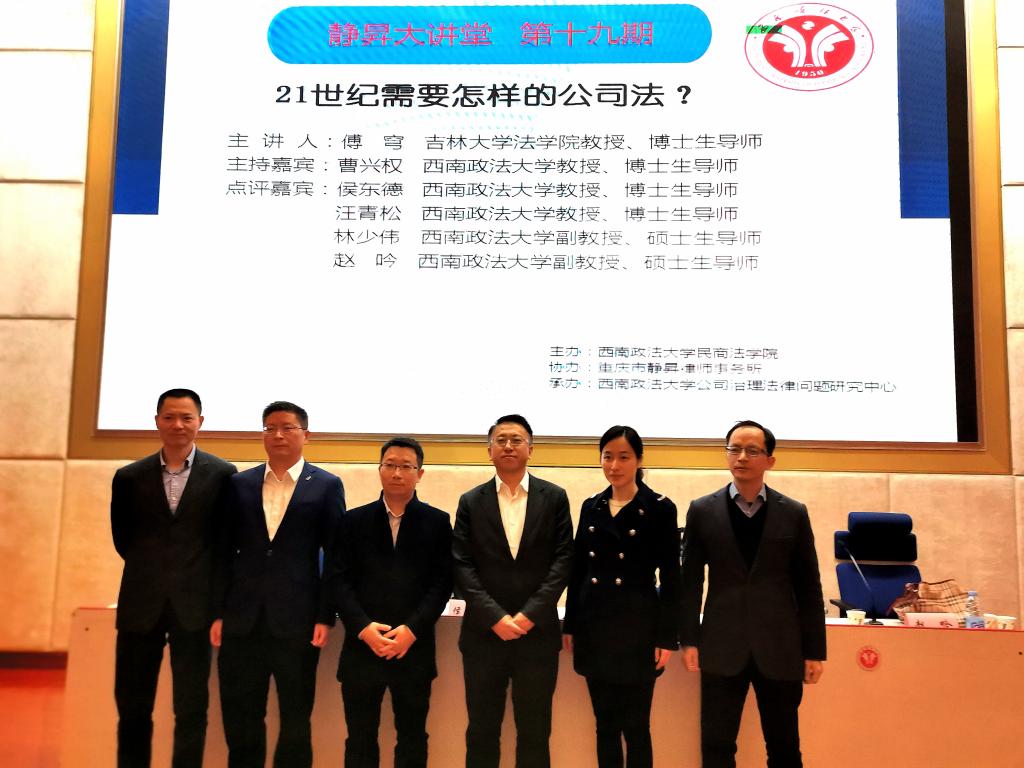 傅穹教授应邀赴西南政法大学进行题为“21世纪需要怎样的公司法”的主旨演讲。静昇大讲堂由西南政法大学民商快猫