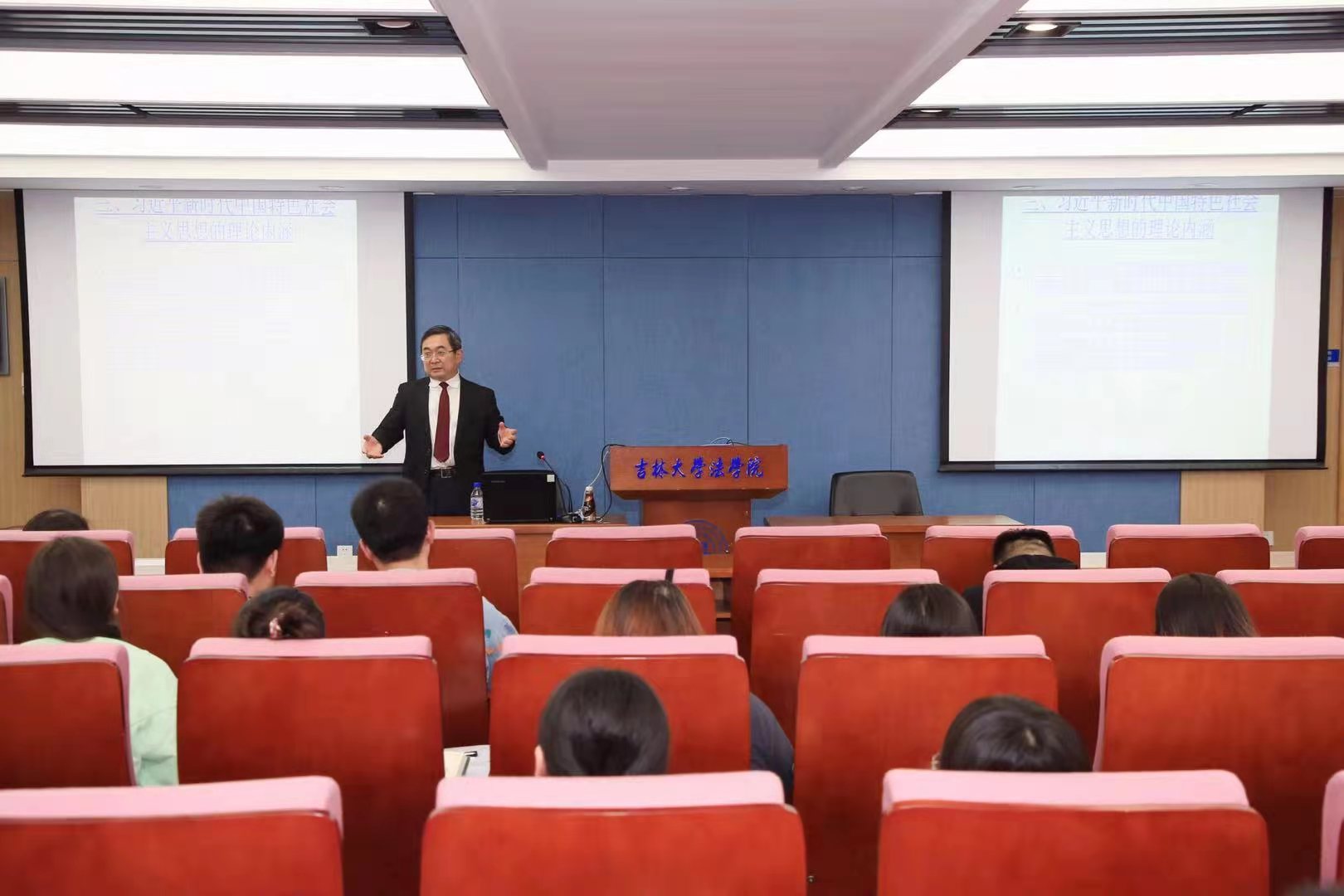师生带来题为“习近平新时代中国特色社会主义思想下的习近平法治思想的理论特征”的专题报告。讲座由快猫