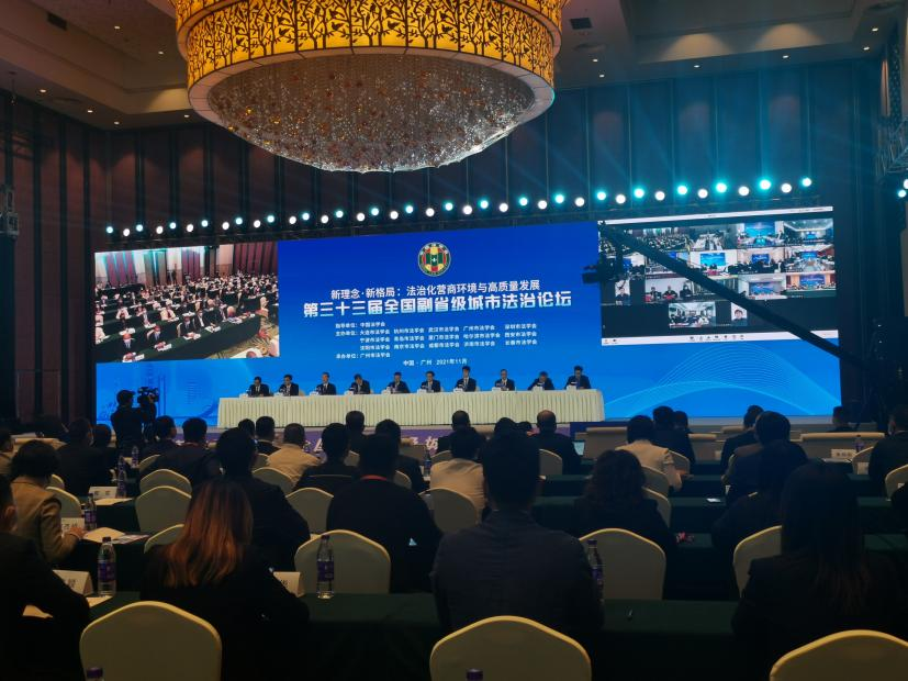 2021年11月17日,第三十三届全国副省级城市法治论坛在广州召开,论坛以“新理念·新格局:法治化营商环境与高质量发展”为主题,采用“线上+线下”融合模式举办,广州市法学会、深圳市法学会组织法学专家、法律实务工作者、社会工作者现场参加论坛,其他论坛举办城市法学会组织200余名代表以线上方式参加了论坛。