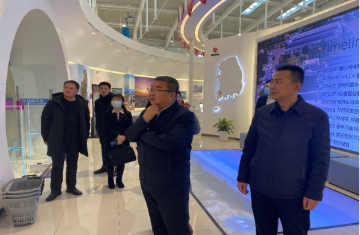 调研伊始,在中韩(长春)国际合作示范区相关领导的陪同下,徐教授一行人参观了中韩示范区产业创新基地、中韩城市馆,了解了中韩合作示范区的主要产业发展方向、相关项目介绍等,同时观看了中韩示范区的宣传片,对该合作示范区进行更深入的了解。