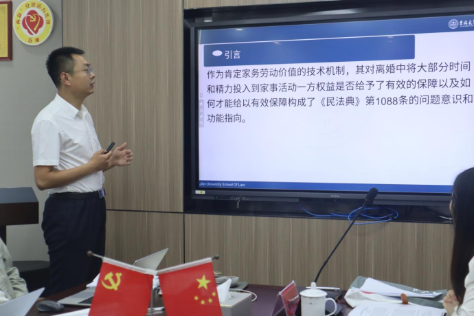 主题报告的第二单元由刘国栋副教授主持,张学军教授分享了自己对“出于选择的单身母亲”生育合法化问题以及“夫妻一方事后追认”制度的看法,刘国栋副教授、唐波涛讲师、陈凤博士研究生、杭广远博士研究生则分别以《离婚经济补偿制度与司法适用的反思与完善》《婚姻家庭法的法源规制路径》《论夫妻间不动产约定的法律适用》《民法典施行背景下证明责任分配的识别与解释》为题目作专题报告。江苏政纬律师事务所武建威律师、沈开付律师对发言进行了评议。