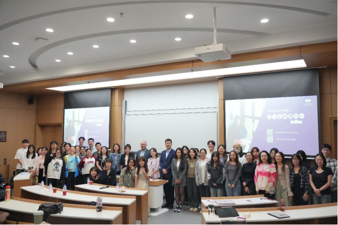 的合作项目,诚挚邀请大家前去交流学习,并亲自向同学们赠送了华威大学快猫