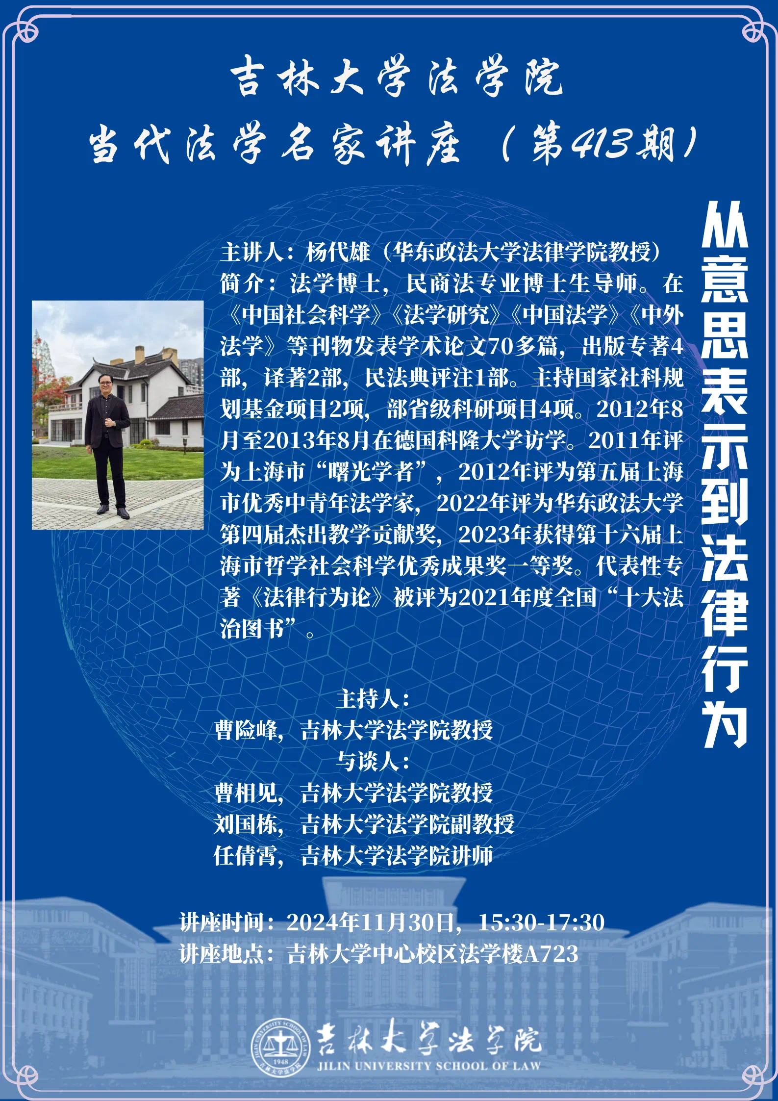 上一篇:当代法学名家讲座(414)暨秦汉至唐律令系列学术讲坛(10):中国法律史研究的新方法与新视角 下一篇:吉大法学新锐茶座(130):公司法改革视野下的对赌纠纷裁判逻辑
