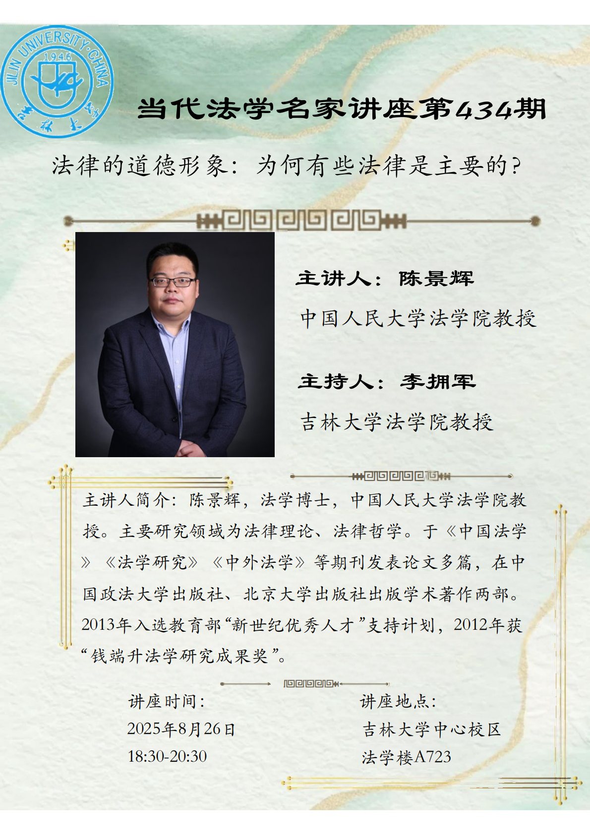 上一篇:当代法学名家讲座(435):“听讼”十七“术”对“听讼惟明”之“道”的落实、应用一一《折狱龟鉴》阅读新发现 下一篇:吉大法学学术茶座第151期:科技巨变时代的尊严法理